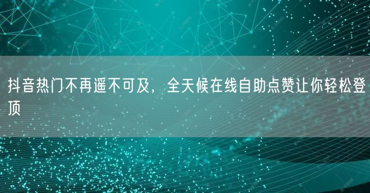 在这个竞争激烈的抖音时代,想要成为热门并不容易。然而,有了全天候在线自助点赞的助力,抖音热门不再遥不可及。让我们一起把握机会,用优质内容加上自助点赞的助力,轻松登顶抖音热门!