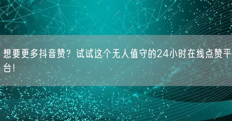 总之,想要轻松获得更多抖音赞,一个无人值守的24小时在线点赞平台是你的不二选择。赶快尝试这个高效的点赞方式,提升你的抖音点赞量,让你的内容更受欢迎吧!