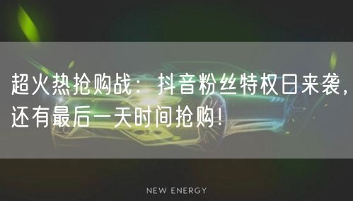 超火热抢购战:抖音粉丝特权日来袭,还有最后一天时间抢购!