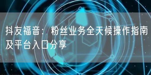 抖友福音:粉丝业务全天候操作指南及平台入口分享