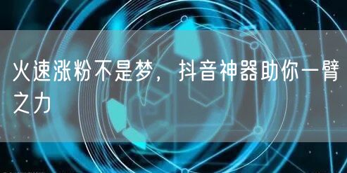 抖音已成为当下最热门的社交媒体平台之一,吸引了众多用户的关注和参与。在这个平台上,人们通过短视频展示自己的才艺、分享生活点滴,吸引了众多粉丝的关注。如何在这个竞争激烈的平台上快速涨粉,成为了许多用户关注的焦点。今天,就为大家介绍一款抖音神器,助你火速涨粉,实现梦想!