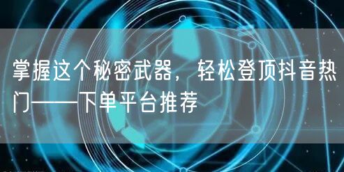 掌握这个秘密武器,轻松登顶抖音热门——下单平台推荐