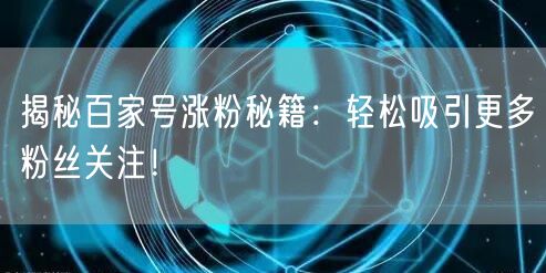 揭秘百家号涨粉秘籍:轻松吸引更多粉丝关注!